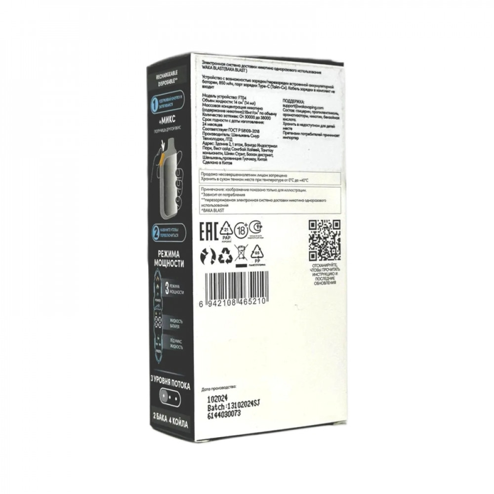 Аромат/вкусЧерника малина + ментол микс БрендWAKA ДисплейДа